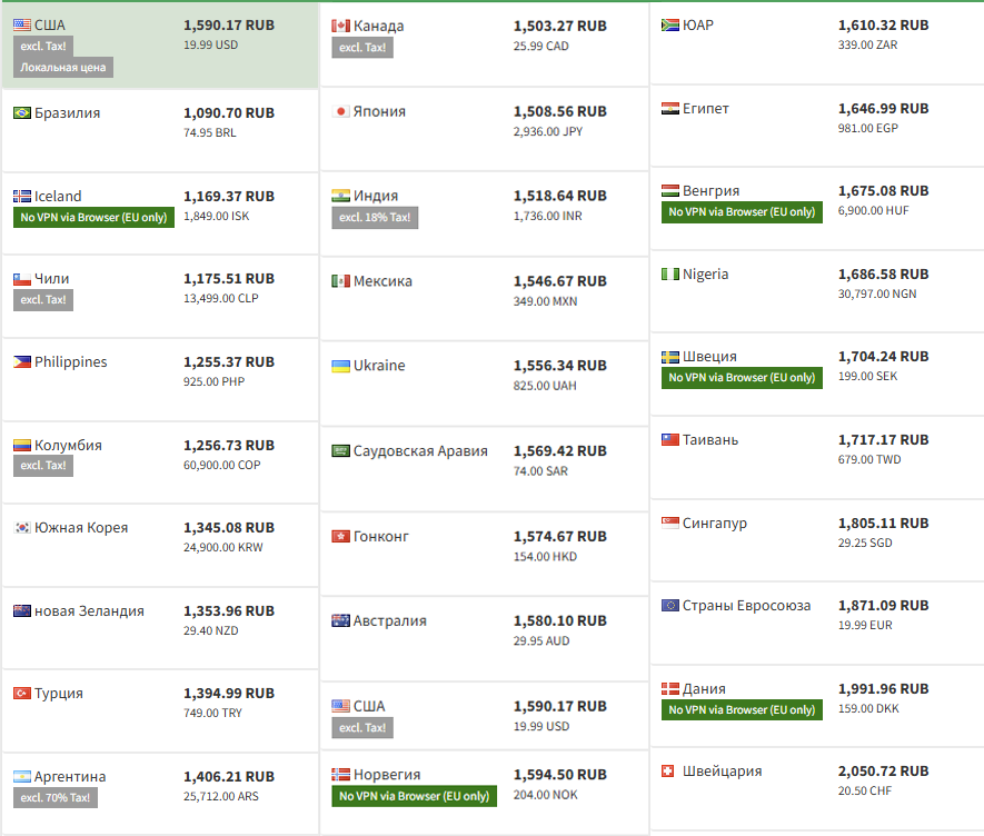 Различие цен на гифт-коды обусловлено стоимостью игр в странах с разным доходом, инфляцией или девальвацией национальных валют. Разработчики понимают, что $30 для игрока из США или Японии, это не то же самые $30 для игрока из Турции или Аргентины. Так одна и та же игра может стоит $10 в Турции, а в Украине уже $20.