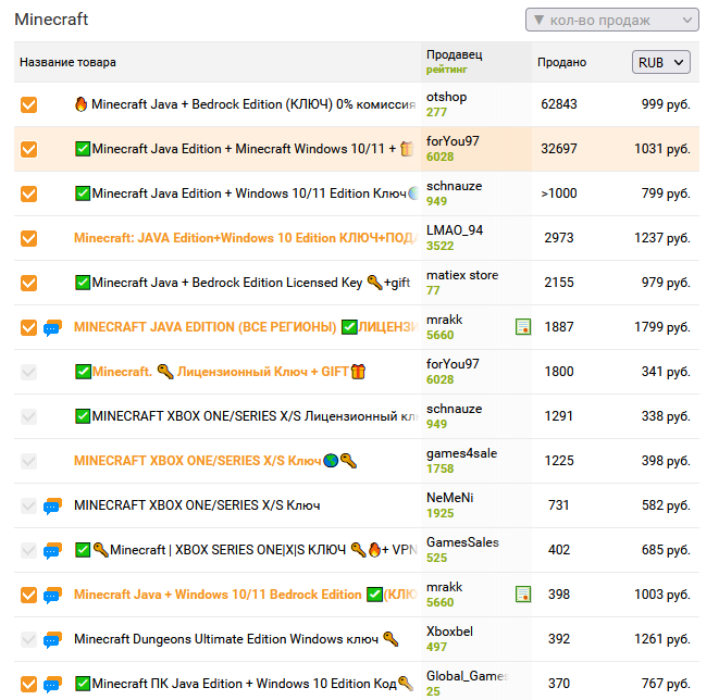 Обратите внимание, что на данных площадках продаются ключи не только от Minecraft Java/Bedrock Edition, но и для других платформ, перед покупкой убедитесь в том, что покупаете нужный ключ.